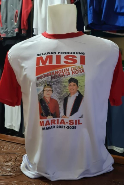 Konveksi kaos partai bahan hyget putih list warna merah dengan sablon bagian dada dan punggung ukuran masinal A4, yang minat bisa kontak kami :