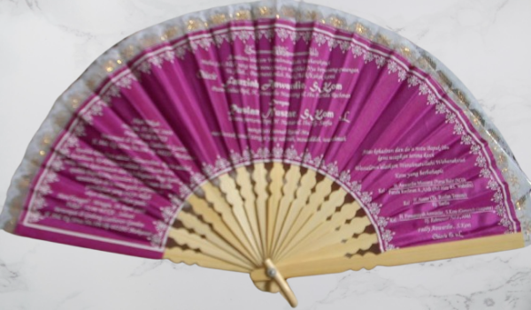 Ini salah satu produk kami undangan model kipas warna kain dan sablon bisa disesuaikan permintaan pemesanan