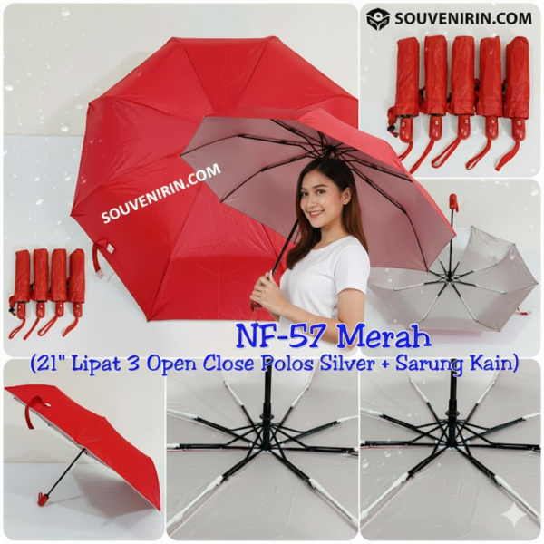 Payung Merah Lipat Tiga Buka Otomatis