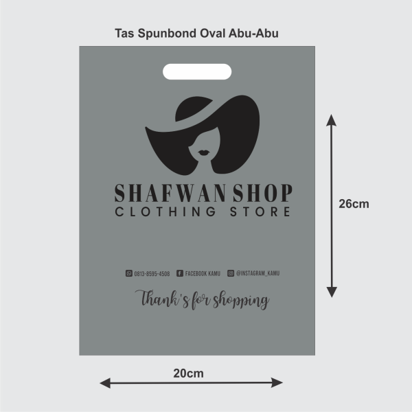 Tas Spunbond Abu 20 x 26 cm Gratis sablon 1 warna